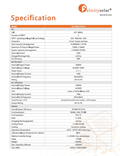 100Kw Inverter with 215KWh battery bank. All in one.